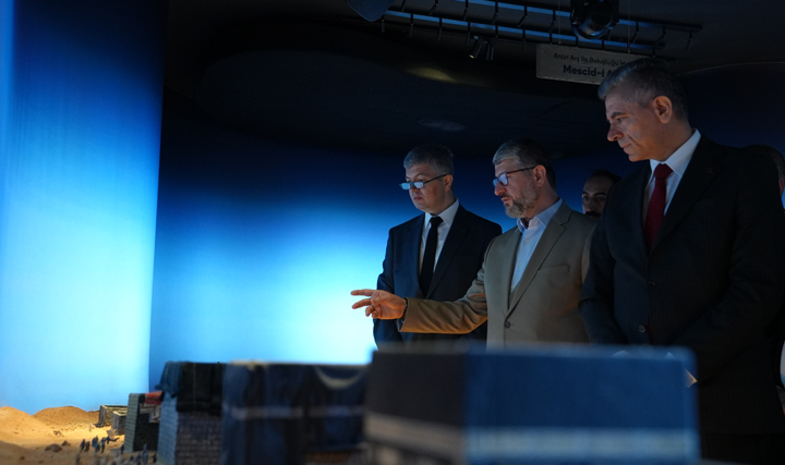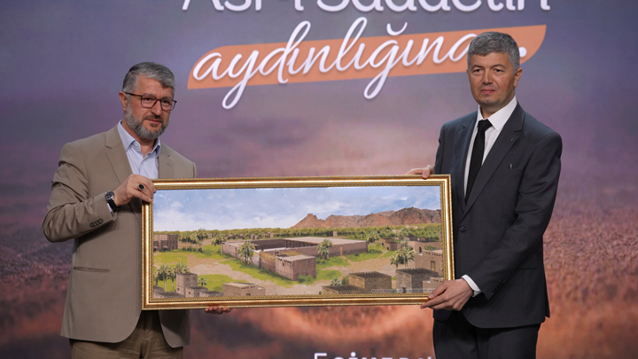 Konuşmasının ardından İstanbul Vali Yardımcısı Okan Leblebicier’e Mescid-i Nebevî’nin ilk inşa halinin takribi çizimi, Siyer Eğitim Merkezi Diorama Projesi’nin hayata geçmesinde önemli katkıları olan Mimar Ömer Armutçu ve Diorama sanatçısı Yasin Karakaya’ya plaketleri hediye edildi.
